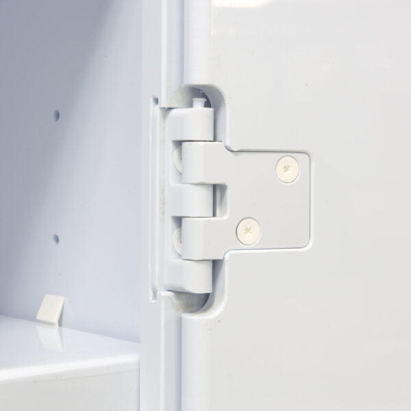 Handles, Hinges & Fasteners: Polypropylene handles are attached by screws with a polypropylene cap. Doors are attached by 2 or more polypropylene hinges, depending on the height