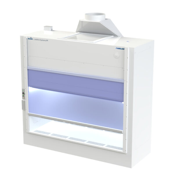 Introducing the FumeGard NU-156 – now from LabAire Systems*, designed to meet the stringent standards set by NSF 49. Standard features include all polypropylene hood construction, a polycarbonate view screen with 10″ access opening and electronic monitoring of exhaust and air supply. Polypropylene is specified for its chemical resistance, hydrophobic and impact-resistance in addition to superior rust-free performance when compared to metal laboratory fume hoods.